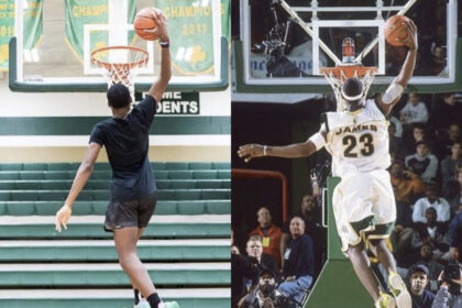 LeBron James Praises Son Bryce James On Instagram And Posts Photos Of Them Doing The Same Dunk: “My Twin, My Ace, My Young King.”