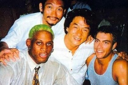 Rare Picture Of Dennis Rodman, Jackie Chan, Jean-Claude Van Damme And Tsui Hark In The Set Of “Double Team”