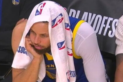 NBA Fans React To Photo Of Stephen Curry Looking Depressed On The Warriors Bench: “No KD To Bail Him Out Against LeBron”