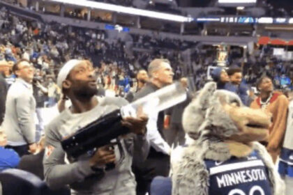 Patrick Beverley Was Messing Around With A T-Shirt Gun In The Fourth Quarter As The Timberwolves Blew Out The Portland Trail Blazers