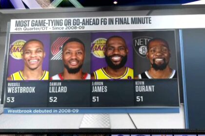 Russell Westbrook Has The Most Game-Tying Or Go-Ahead Shots In The Final Minute Among All Active NBA Players Since 2008-09