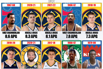 The Most Assists Per Game In A Season By A Center: Nikola Jokic And Wilt Chamberlain Own 7 Of The Top 10 Best Seasons