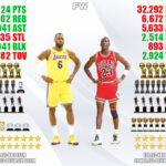 Michael Jordan finished his career with an absurd 30.1 PPG average along with 6.2 RPG, 5.3 APG, 2.3 SPG, and 0.8 BPG. Other players like LeBron James can try to add to their legacies, but MJ is the GOAT, and it might be another 50 years before we see another NBA player come close to matching his greatness.