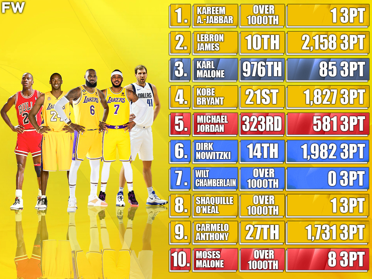 If you ask NBA fans what the most exciting part of the game has been over the past 20 years, they will all say the evolution of the three-point shot. Well, that is probably only the case when you ask the modern-day NBA fan and not the ones who still reminisce about the old days. The fact is that over the past 15 years, the game has become much more 3-point oriented than any other era in NBA history. Thanks, Stephen Curry. What is funny is how many of the Top 10 scorers in NBA history rarely used the 3-point line and dominated the game in other ways.