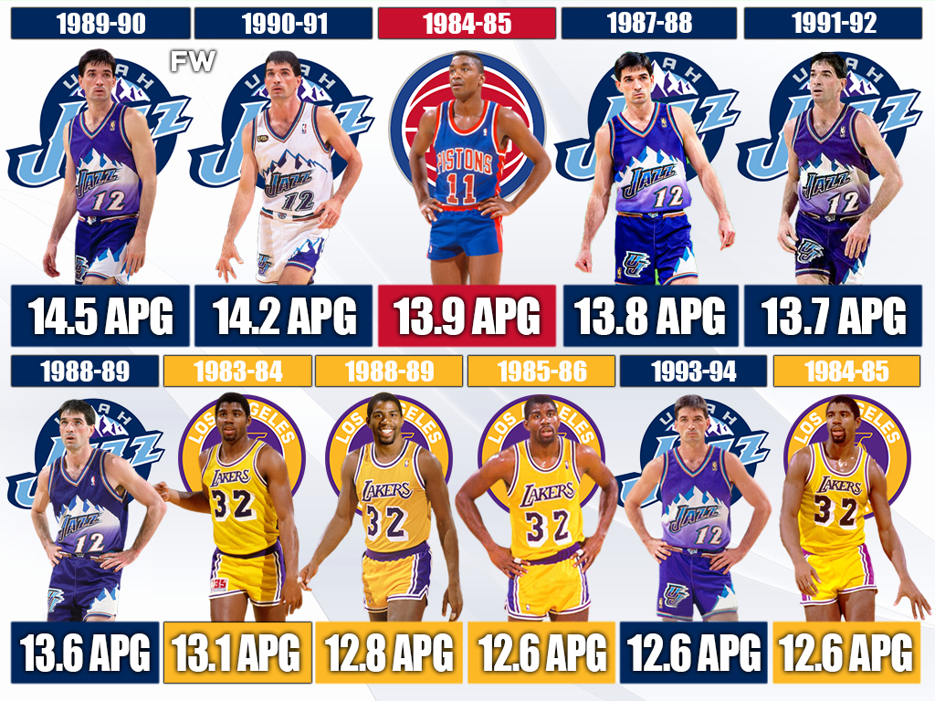 6. John Stockton – 13.6 APG (1988-89 NBA Season)