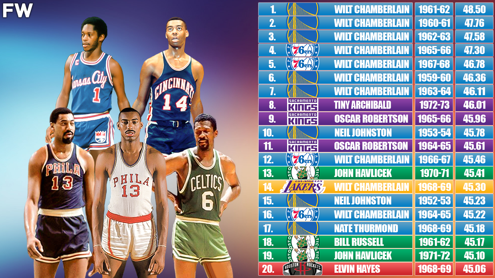 Stats: 50.4 PPG, 25.7 RPG, 2.4 APG