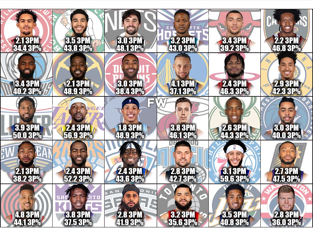 Here is the best shooter on every NBA team, based on the number of threes made per game and the percentage from beyond.