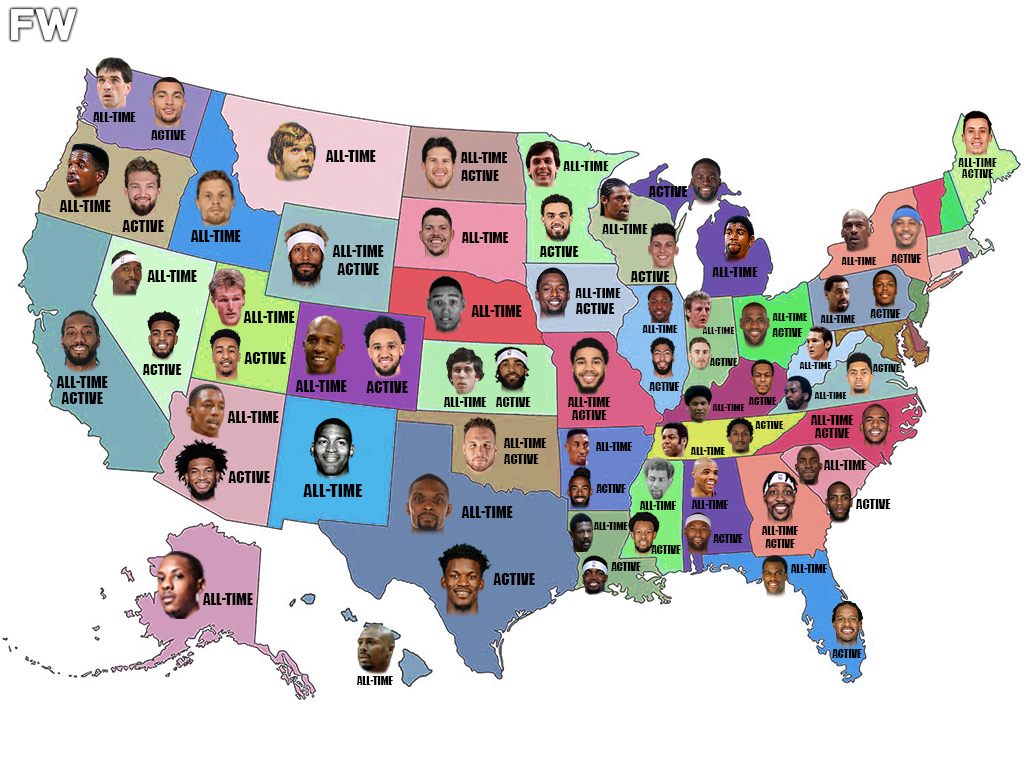 Recently, Reddit user WilhelmTheOkay created a post detailing a list of the best NBA players who were born in each US state, except Vermont since no NBA player was born there. The list has two categories: one player that was born in the state that is currently on an active roster, and then the best All-Time player that was born in that state. WilhelmTheOkay’s post is compiled below, and he deserves full credit for the extensive research and the great work created.