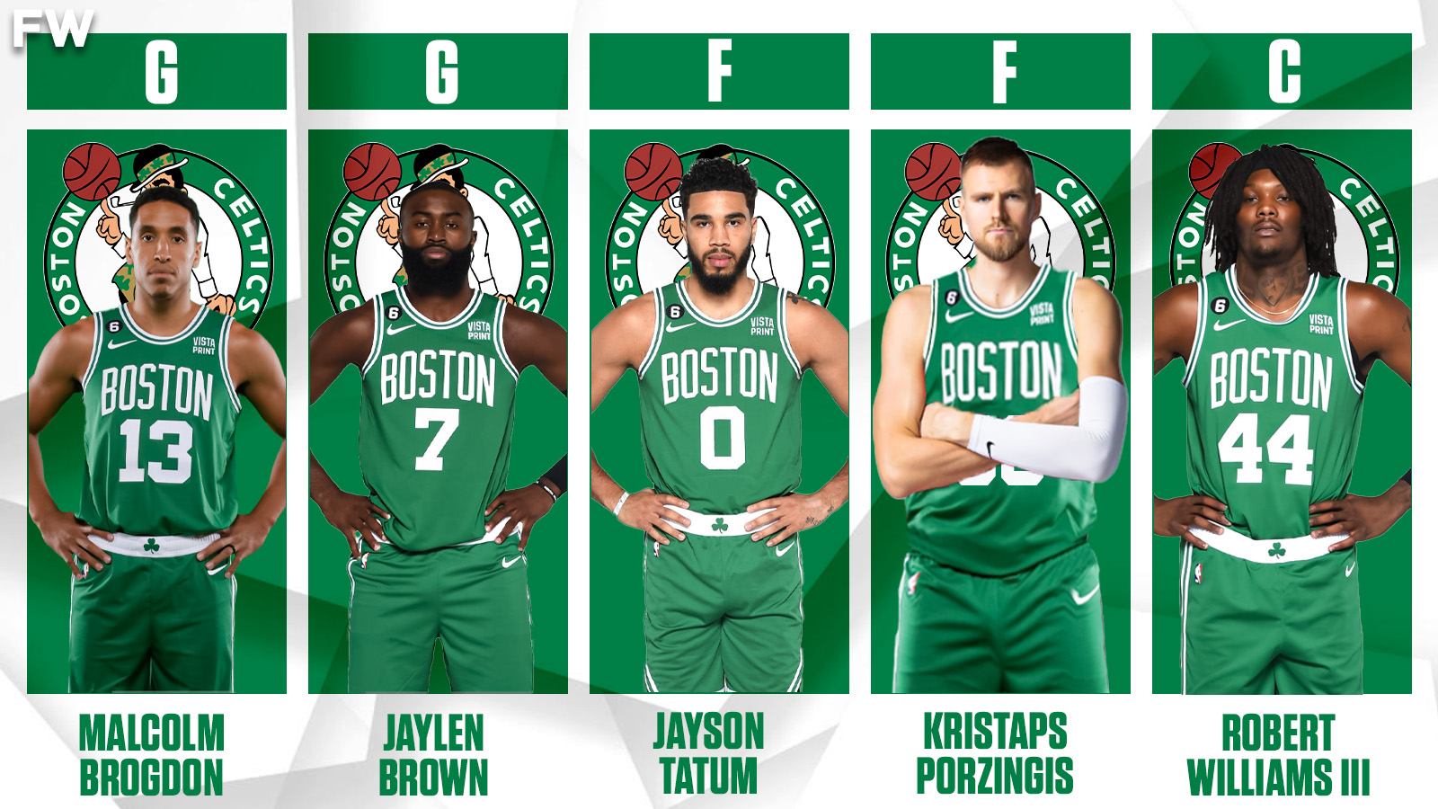 The C’s have managed to put together a lineup that is extremely tall in each position. Brogdon (6’5″), Brown (6’6″), Tatum (6’8″), Porzingis (7’3″), and Williams (6’9″) are an elite defensive combination. On top of that, they will have the likes of Derrick White, Al Horford, and Blake Griffin coming off the bench.