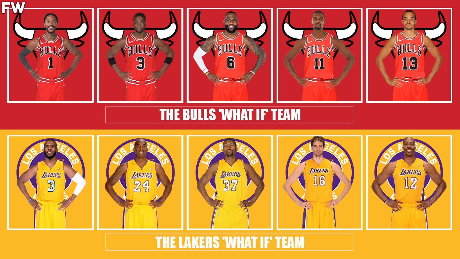 Let’s re-write history and create two “what if” squads. It is time to uncover one of the greatest 7-game series’ ever as the Bulls and Lakers combine their “what if” talents and compete until the final whistle. But first, here is how the starting lineups shape out for both sides.