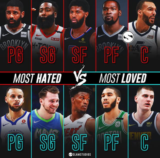 Playmaking is also in favor of Team Most Loved, with 4 guys capable of running the offense in Stephen Curry, Luka Doncic, Jimmy Butler, and Nikola Jokic. For Team Most Hated, only Kyrie Irving, James Harden, and at times Kevin Durant can do that.