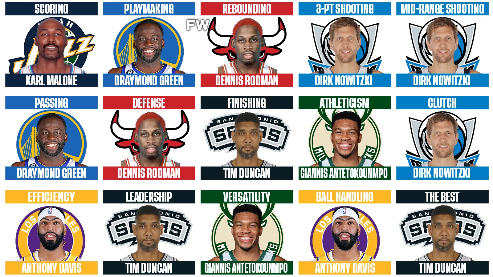 Throughout NBA history, power forwards have proven to be some of the most talented scorers, rebounders, shot-blockers, and overall interior defenders to ever step on a basketball court. Below, you will get an in-depth look at players in the power forward position who perfected and were elite at a specific part of their craft, earning them a spot in the upper echelon of the power forward hierarchy.