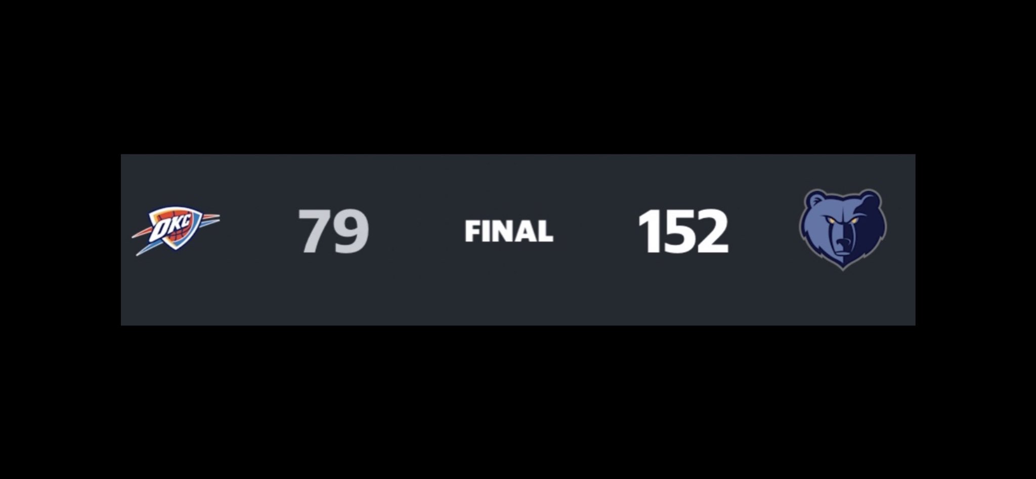 Memphis Grizzlies 152 Oklahoma City Thunder 79: Biggest margin of victory in NBA history.