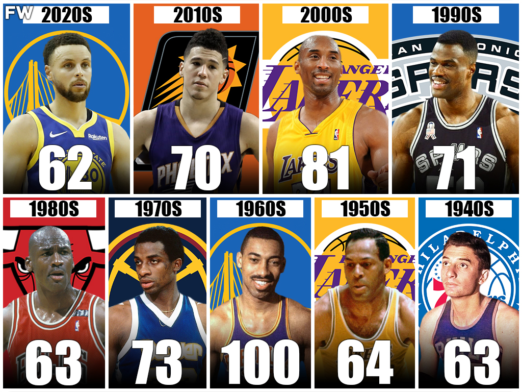 Some fans are lucky enough to remember Chamberlain, Elgin Baylor, and Michael Jordan, while today’s younger fans remember Kobe Bryant and Devin Booker as their greatest scoring game. If anything, each leading scorer from each decade was consistent. The goal was to get the ball to the hoop and they didn’t rely on the three-point line, which might shock you for one particular player.