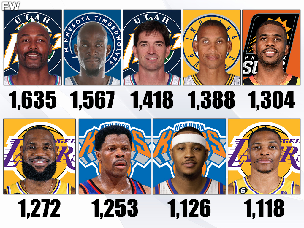 Without any more explanation, these are the 9 players in NBA history who have made the most starting appearances in the regular season and playoffs combined.