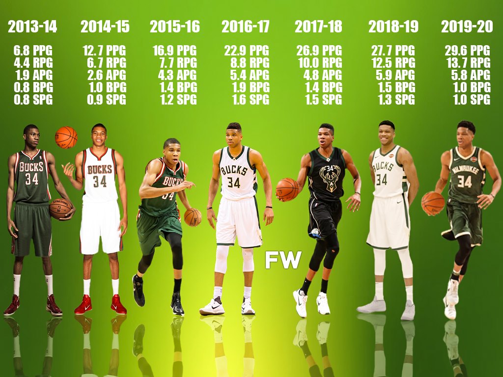 Only time will reveal those answers, but we can tell you that Giannis has yet to reach his plateau since making his debut in 2013. He is the only player in the league who has improved every single year since his Rookie season — a span stretching 6 years.