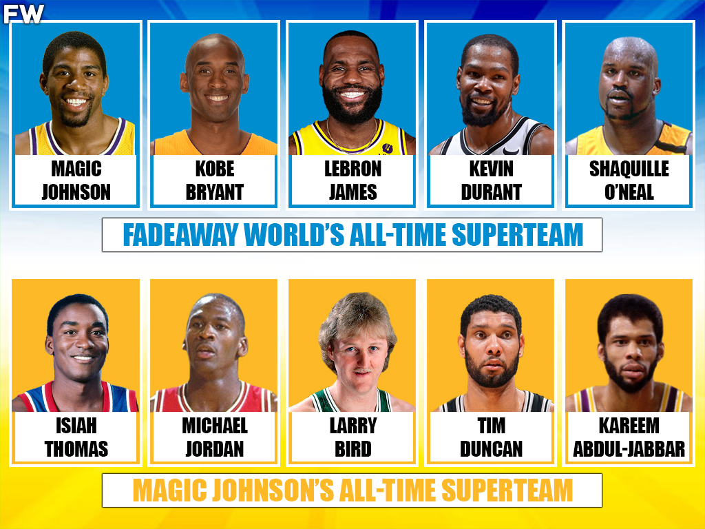 Hall of Fame point guard Magic Johnson once picked his all-time team, and it caused a ton of “barbershop” talk among NBA fans and pundits at the time. The legendary point guard decided to pick his squad around players he not only respected but admired, headlined by guards Isiah Thomas and Michael Jordan. He also rounded out his lineup with a top-two small forward ever in Larry Bird and two dominant big men in Tim Duncan and Kareem Abdul-Jabbar. There was even a tough decision Magic had to make between choosing Kareem Abdul-Jabbar over superstar Shaquille O’Neal:
