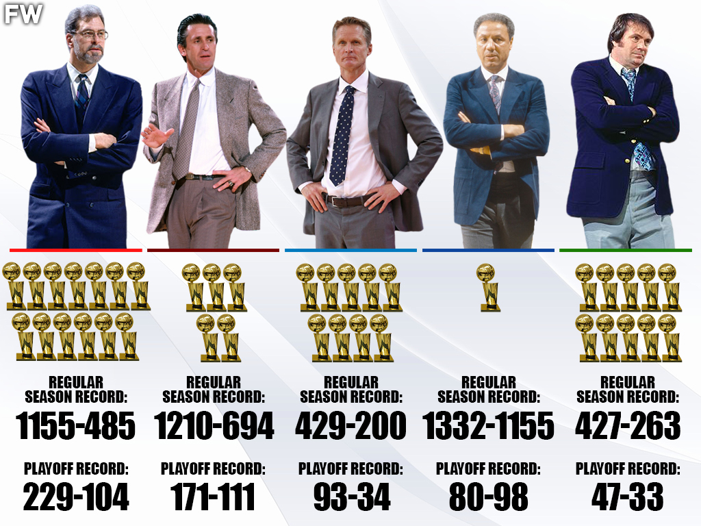 Say what you will about the talent Steve Kerr has had since taking control of the Golden State Warriors, but it was his free-flowing offense that made it successful. Kerr’s green light to Steph Curry and Klay Thompson, along with their incredible ability to hit their shots, has been a huge part of Golden State’s success. In 2015, his 1st season as coach, Kerr led the Warriors to 63 regular-season wins and an NBA title defeating LeBron James and the Cavaliers in 6 games. His next championship would come in 2017 over those same Cavaliers, except this time, they would win in 5 games thanks to the addition of Kevin Durant.