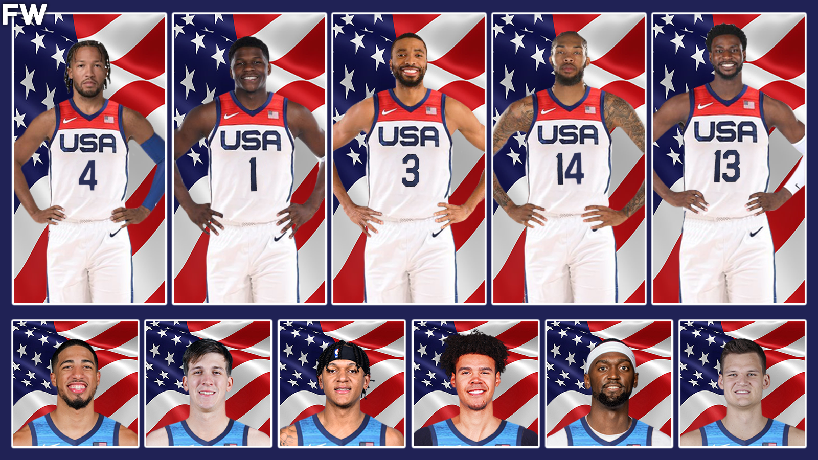 As it stands, the roster has Anthony Edwards, Jaren Jackson Jr., Mikal Bridges, Jalen Brunson, Tyrese Haliburton, Brandon Ingram, Cam Johnson, Walker Kessler, Bobby Portis, Paolo Banchero, and Austin Reaves.