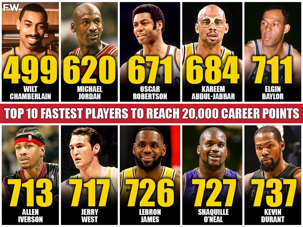 Durant is currently having a season that features MVP-like numbers. If Durant had not been injured this season, we would have seen Durant challenge for the scoring title. When healthy, James and Durant are both lethal options to have at the end of games. That is why both are in the 20K career scorers club and two of the youngest to do so. Join us as we take a look at the other members who got to 20,000 career points with the least amount of games.