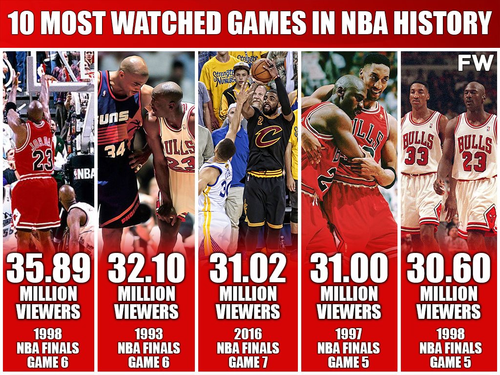 Here are the top-10 most-watched games in NBA history, taking into account that Nielsen data before 1998 didn’t always provide accurate or detailed statistics.