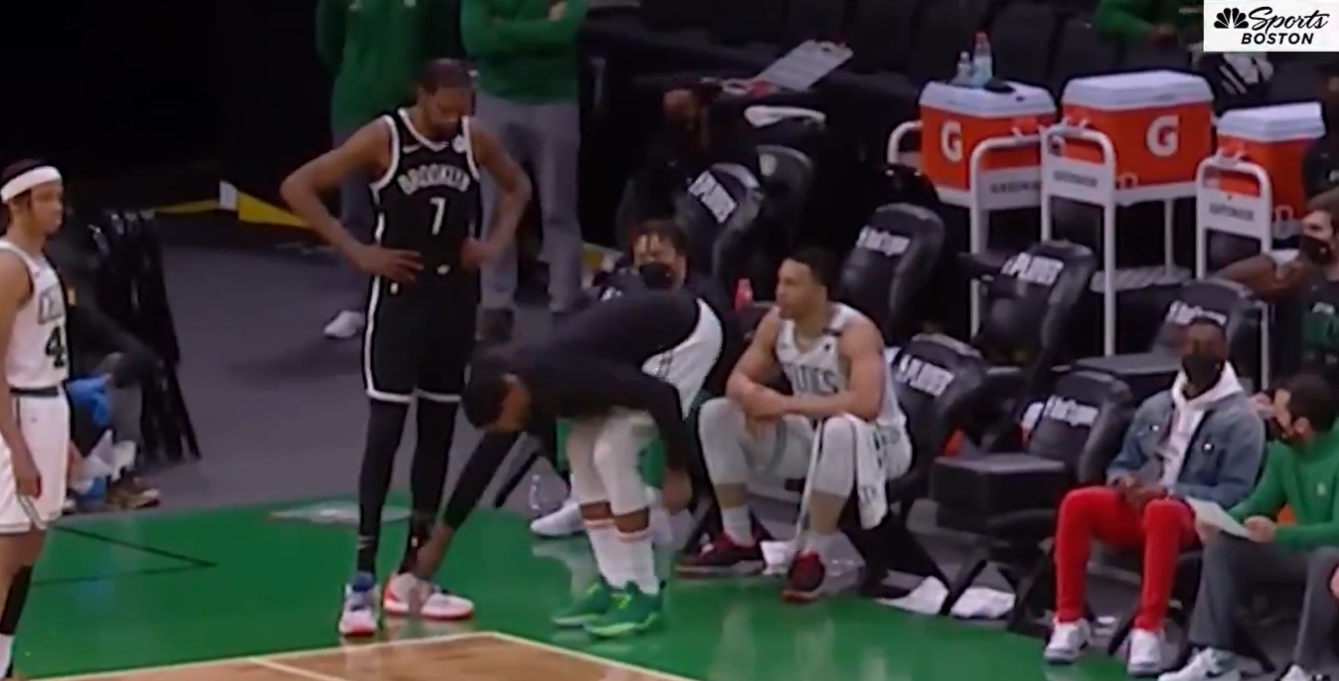 Tristan Thompson untying Kevin Durant’s shoe 💀💀💀 pic.twitter.com/C0i7MjeiVf