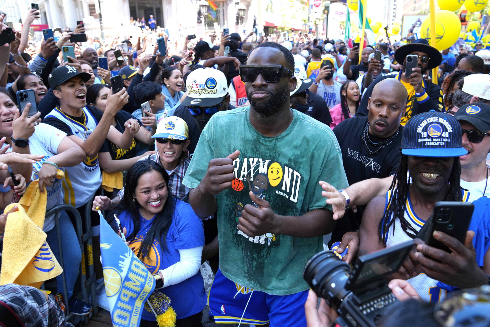 The summer is weighing down on all of us. Draymond was definitely feeling the heat under the San Francisco sun during the outdoor parade, so needed something to help him cool down and rejoin the festivities.