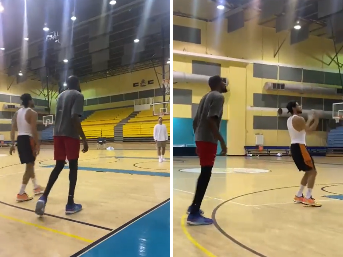 Kevin Durant and Devin Booker getting up shots together in the Bahamas 😎