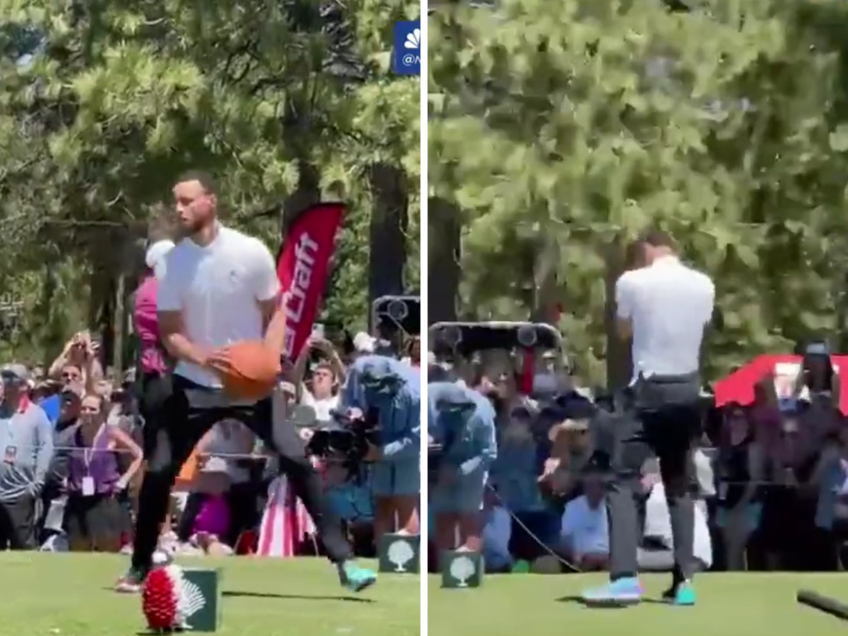 Stephen Curry has been having a great time this offseason, playing in the American Century Championship golf tournament in South Lake Tahoe and making headlines with everything that he does. He was celebrating like on the basketball court after the long drive contest a couple of days ago. Now, he is bringing his sport to the manicured lawns of golf.