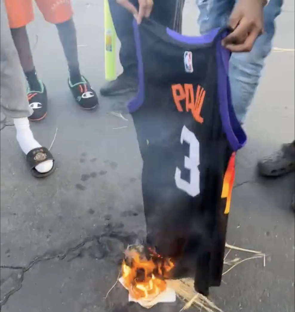 Frustrated Suns fans lamented their team after the game, but some took things even further. On Twitter, a video is going viral that shows Suns fans burning a Chris Paul jersey after Game 7. Paul finished with just 10 points the night.