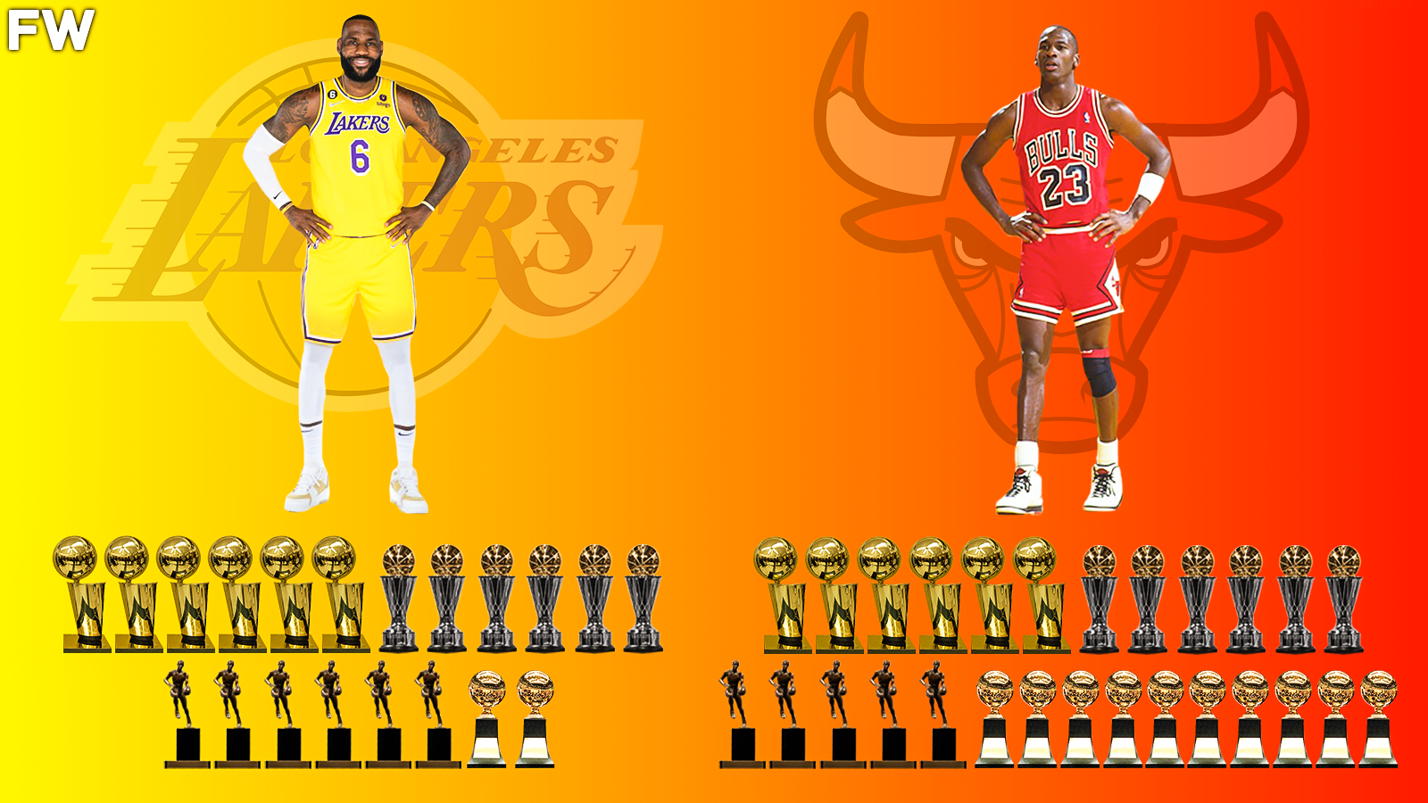 Michael Jordan took charge of every game the Chicago Bulls played in the NBA Finals to win every Finals MVP award. In each of the championship Bulls squads that defeated the opposition during the two separate three-peats, the star shooting guard was the team’s greatest player. The fact that MJ never even forced a Game 7 is truly incredible, but James does not have to compete in those little details. The King must win his accolades on a broader level because capturing six Finals MVPs would look absolutely incredible on the player’s resume, which also includes the all-time scoring record.