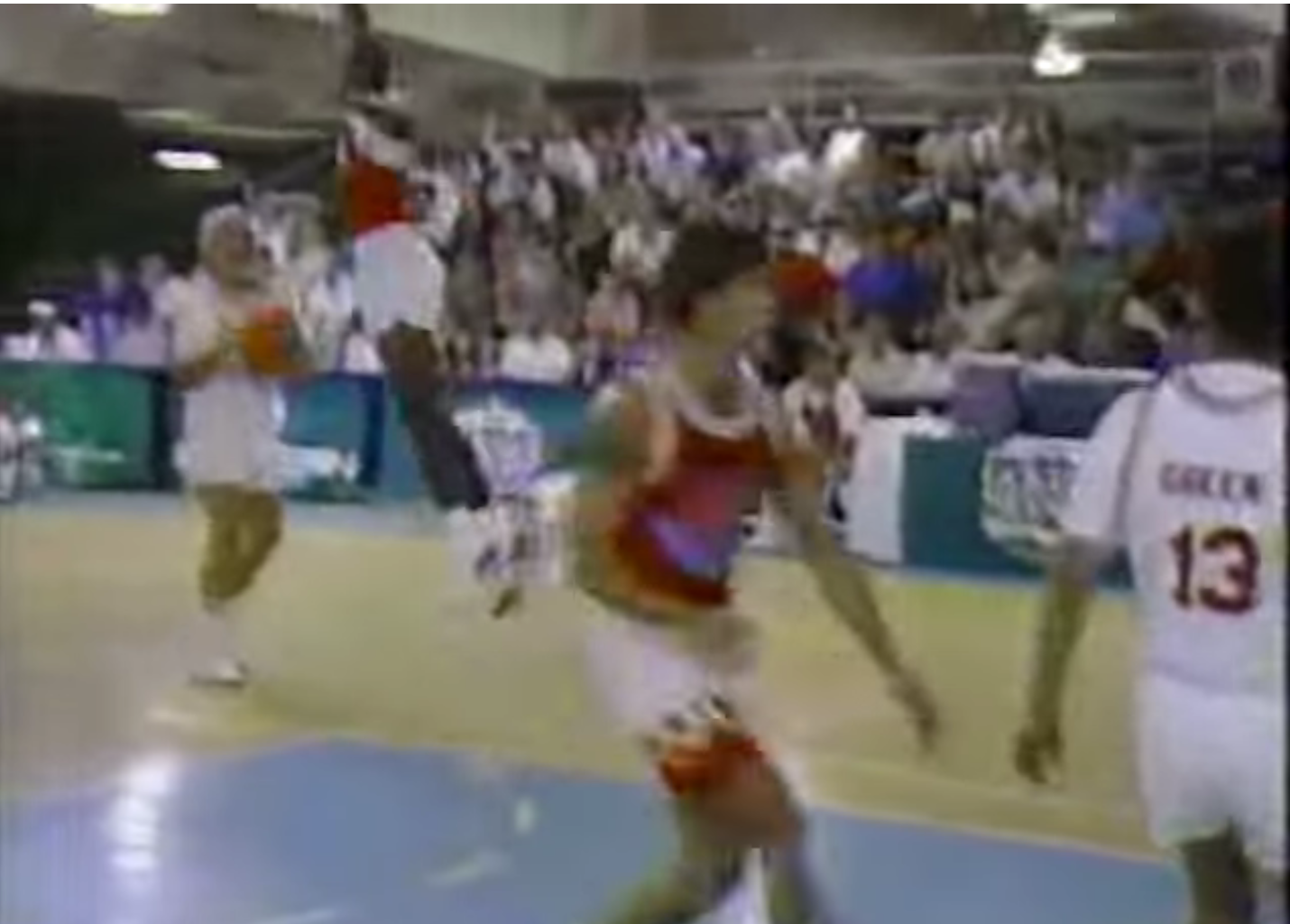 He had the last ball of the game, drove to the basket against Wilkins and Rogers, finishing the game with a tough layup. The game ended 22-20, with MJ having the last laugh after that play by Rogers.