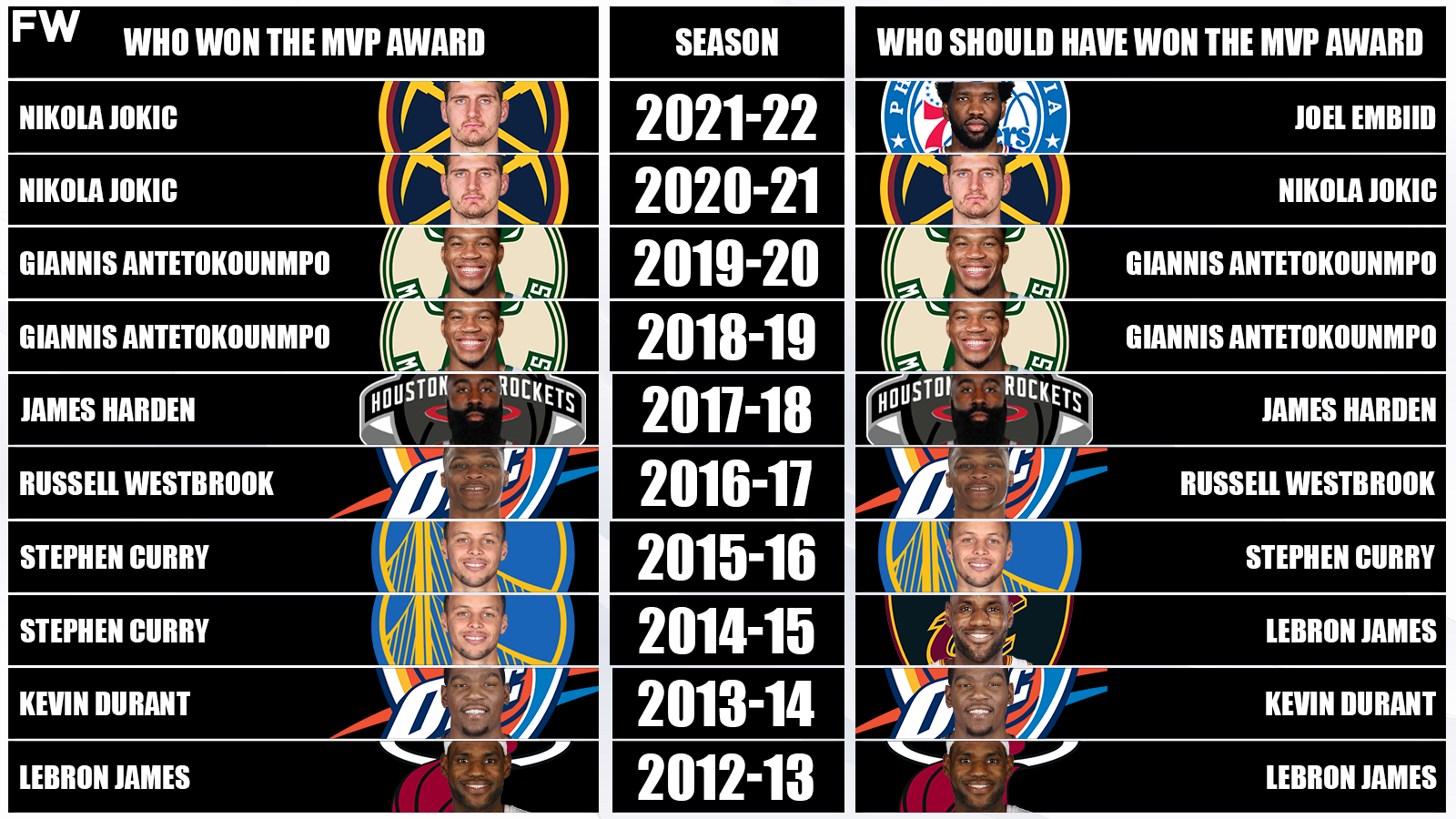 Who Should Have Won The NBA MVP Award Every Season For The Last 10 Years
