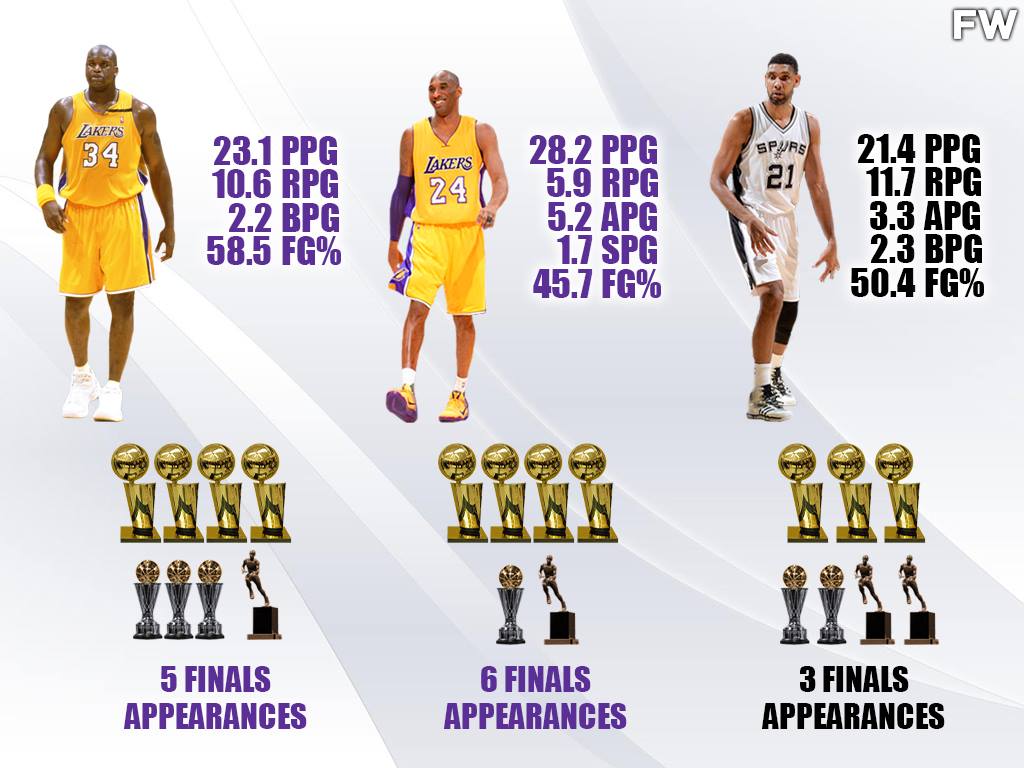 Shaquille O’Neal, Kobe Bryant, and Tim Duncan won a combined 11 NBA championships between 2000 and 2009 and have a combined 4 MVPs and 6 Finals MVPs. But which player out of the three was the best of the 2000s? Shaquille O’Neal was the most dominant, Kobe was the most skilled, and Duncan had the best fundamentals. It is time to decide which Hall of Famer is the greatest to have done it in the 2000s.