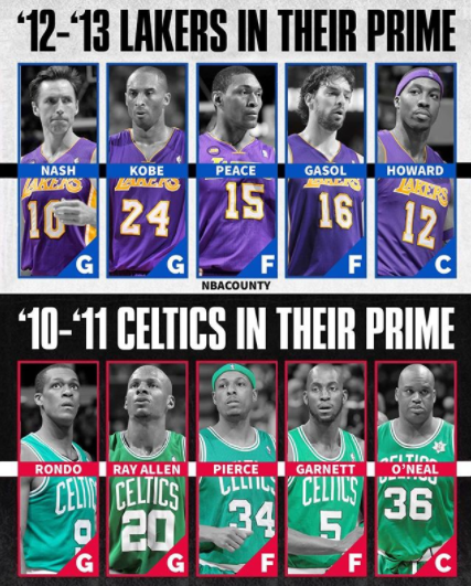 But if we were to put together two teams from the same era with all of their players in their prime, who’d end up on top? Let’s break it down, as we talk about the game everyone wants to watch: Prime 12-13 Lakers vs.Prime 10-11 Celtics.